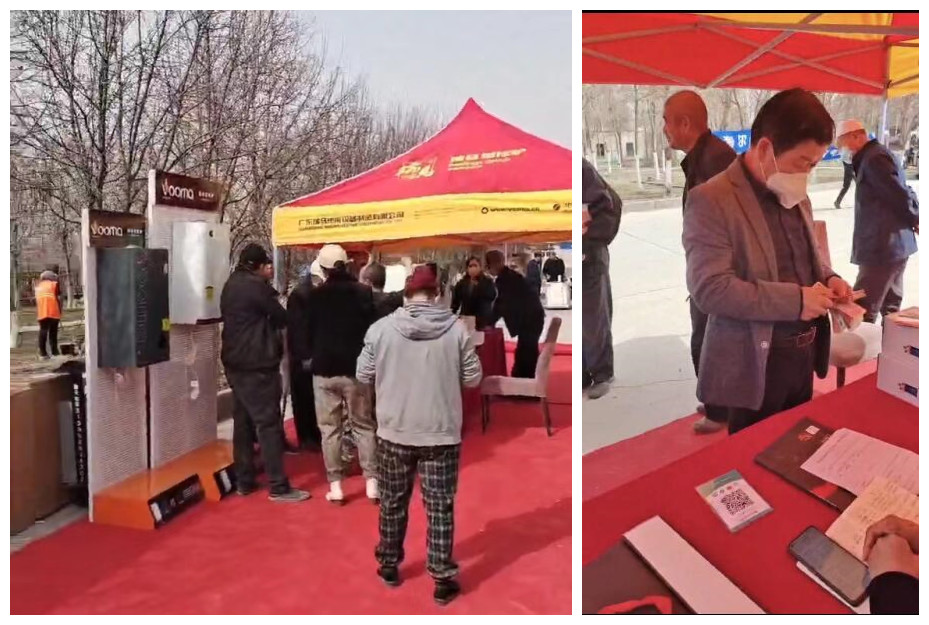 是的,您現(xiàn)在看到的正是瑞馬在新疆昌吉市向村民們宣傳講解瑞馬壁掛爐產(chǎn)品?;顒?dòng)現(xiàn)場村民們和瑞馬工作人員的積極互動(dòng),進(jìn)一步提升村民們對壁掛爐的深入了解。